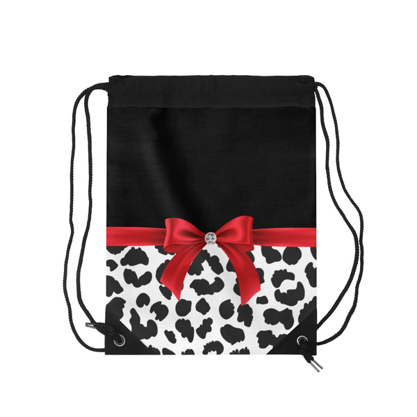 Drawstring Bag-Glam Red Bow-Snow Leopard-Black