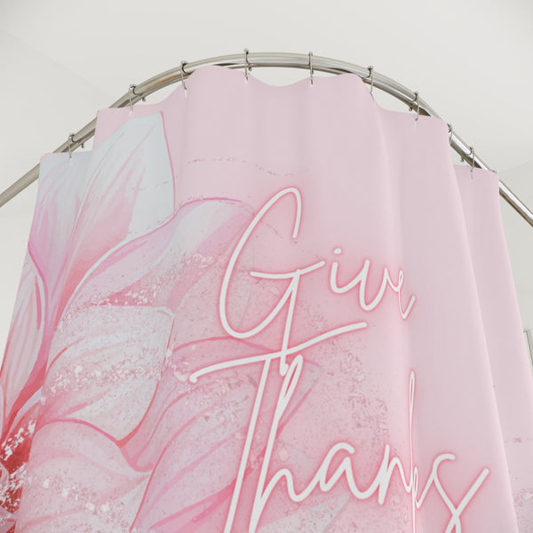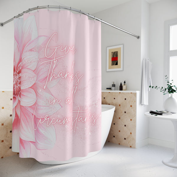 Wrap your space in grace with this elegant “Give Thanks in All Circumstances” shower curtain. Featuring a stunning blush-pink dahlia design and soft watercolor glitter, this piece brings a spirit of gratitude and serenity to your daily routine. Perfect for creating a peaceful, feminine bathroom sanctuary that reminds you to stay thankful through every season.