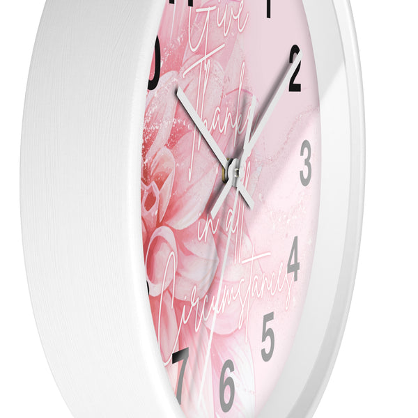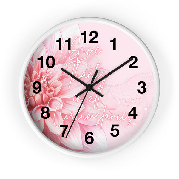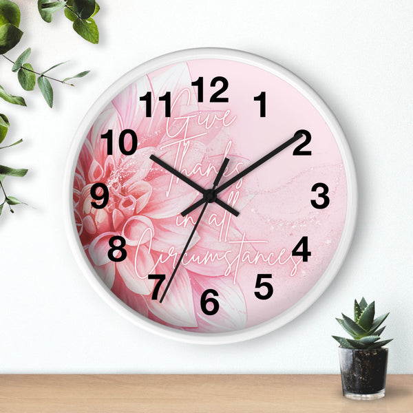 Transform your room or any space into a place of gratitude and beauty with our “Give Thanks in All Circumstances” Christian Wall Clock. Featuring a radiant pink dahlia design and elegant script, this piece blends faith and feminine style effortlessly. The soft blush tones and gentle shimmer create a peaceful, uplifting atmosphere — a daily reminder to embrace thankfulness through every season.